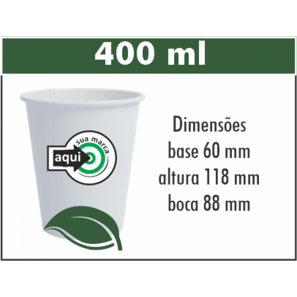 Feito de papel biodegradável, agrega mais valor às empresas que fazem esta escolha consciente. Suporta bebidas quentes e frias.
