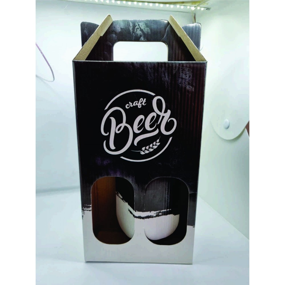 Para Garrafas de 600 ml ARTESANAL, impressão em 4 cores, micro-ondulado, fechamento automático.